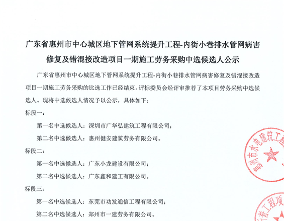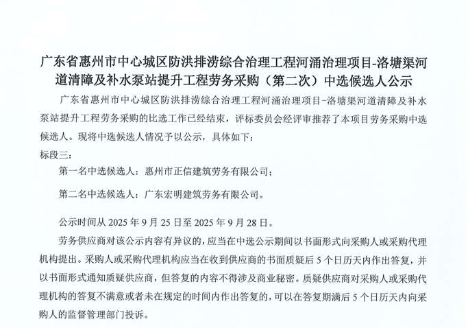 惠州市水电建筑工程有限公司劳务供应商库扩库评审结果公示……