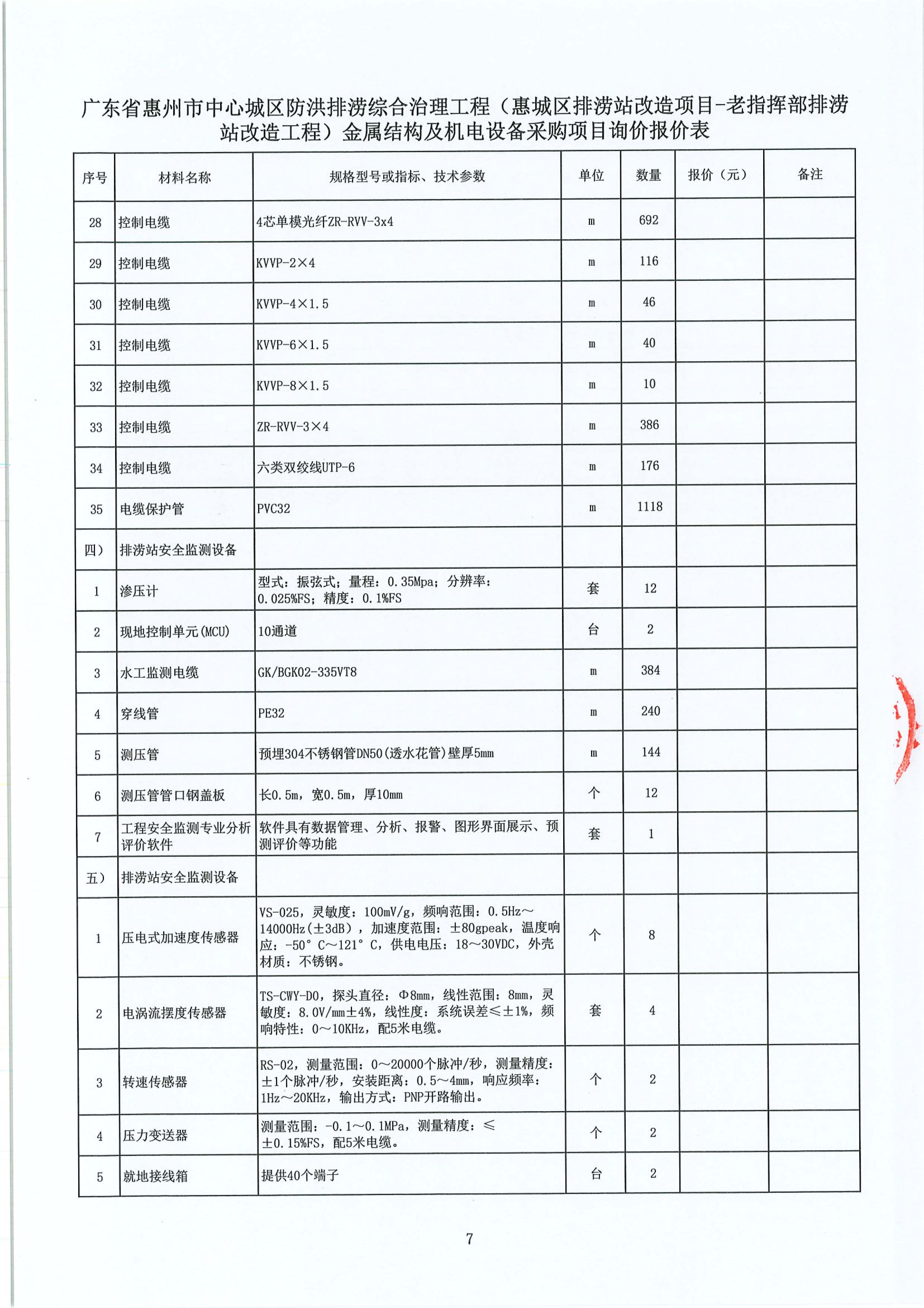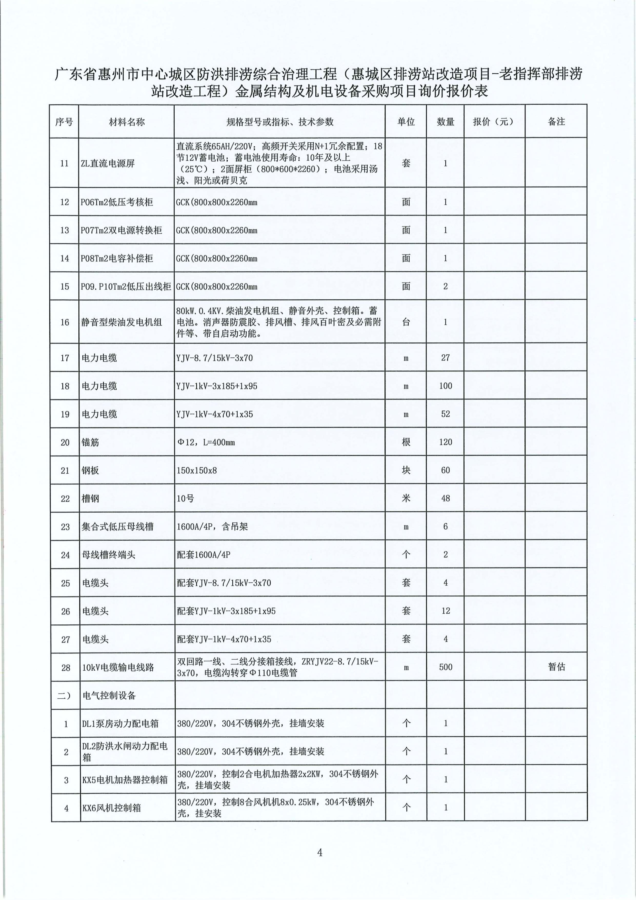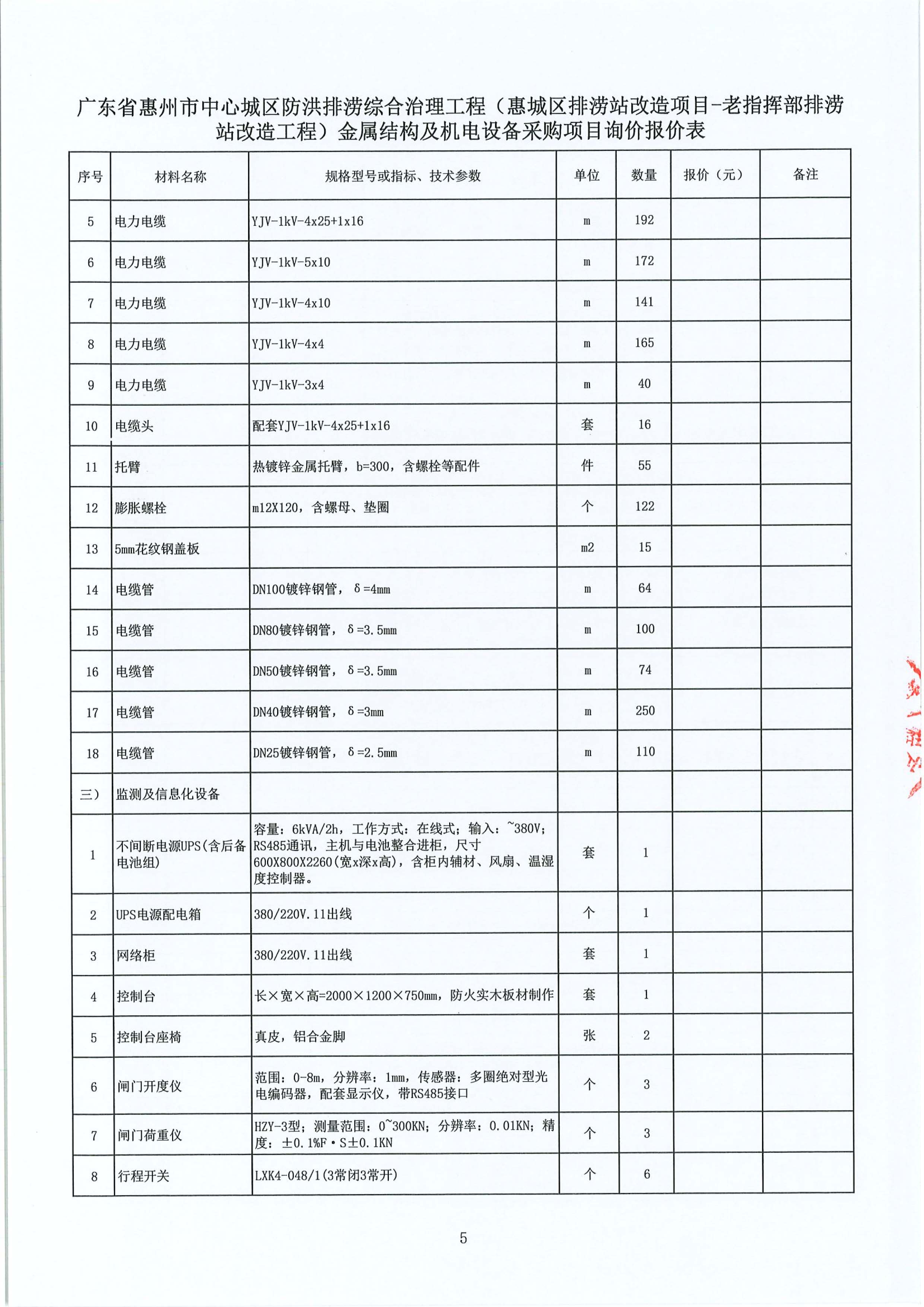 广东省惠州市中心城区防洪排涝综合治理工程(惠城区排涝站改造项目-老指挥部排涝站改造工程)金属结构及机电设备采购项目询价公告附件: