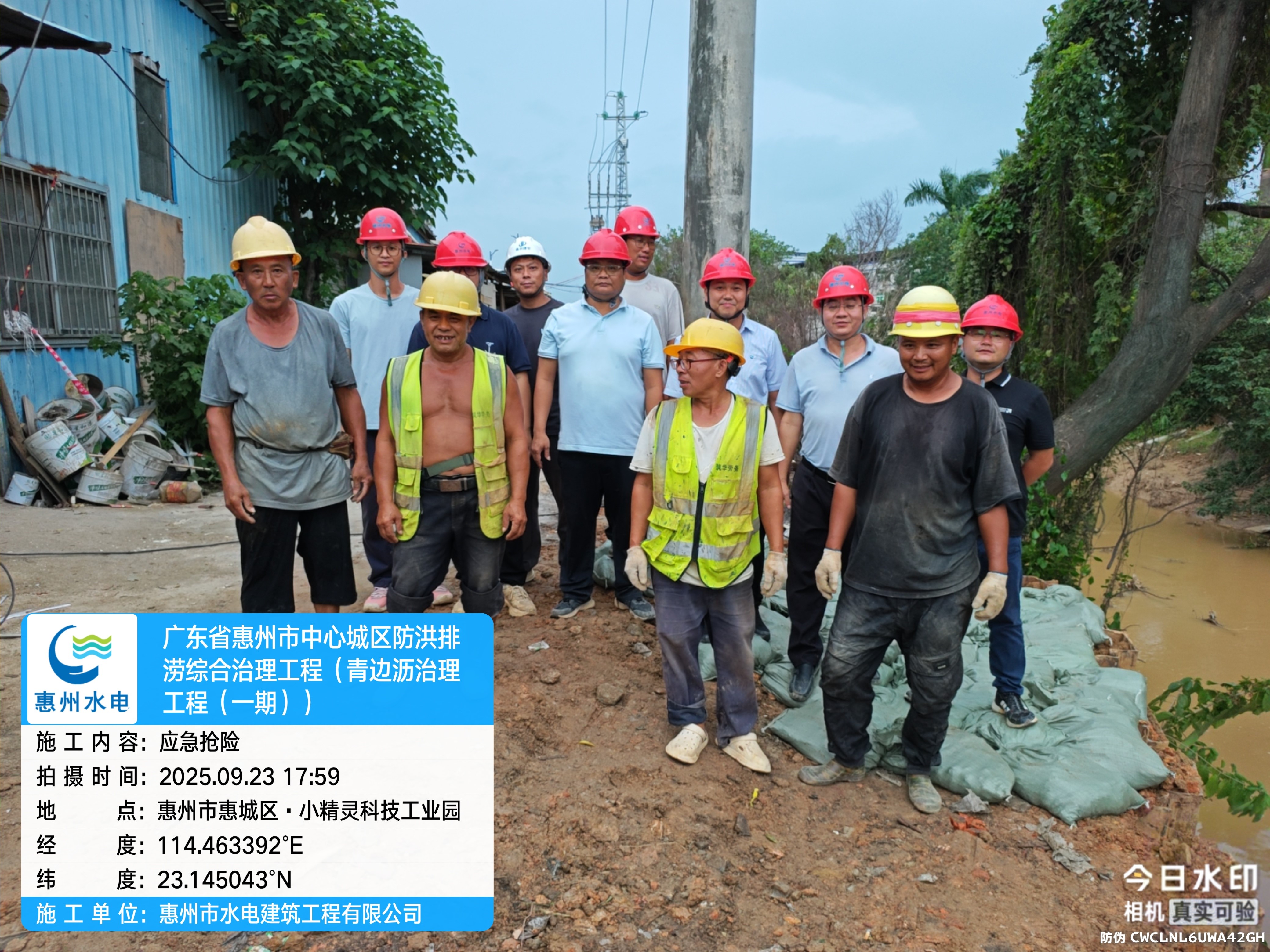 2025年9月23日中午11时30分,我司接到惠城区农水局与惠城高新技术产业开发区管委会的紧急抢险通知,青边沥青边桥下游右岸约一百米处的堤防边坡发生严重坍塌,险情导致边坡上方10KV高压电线杆出现倾斜,周边房屋面临滑移风险,形势十分危急。