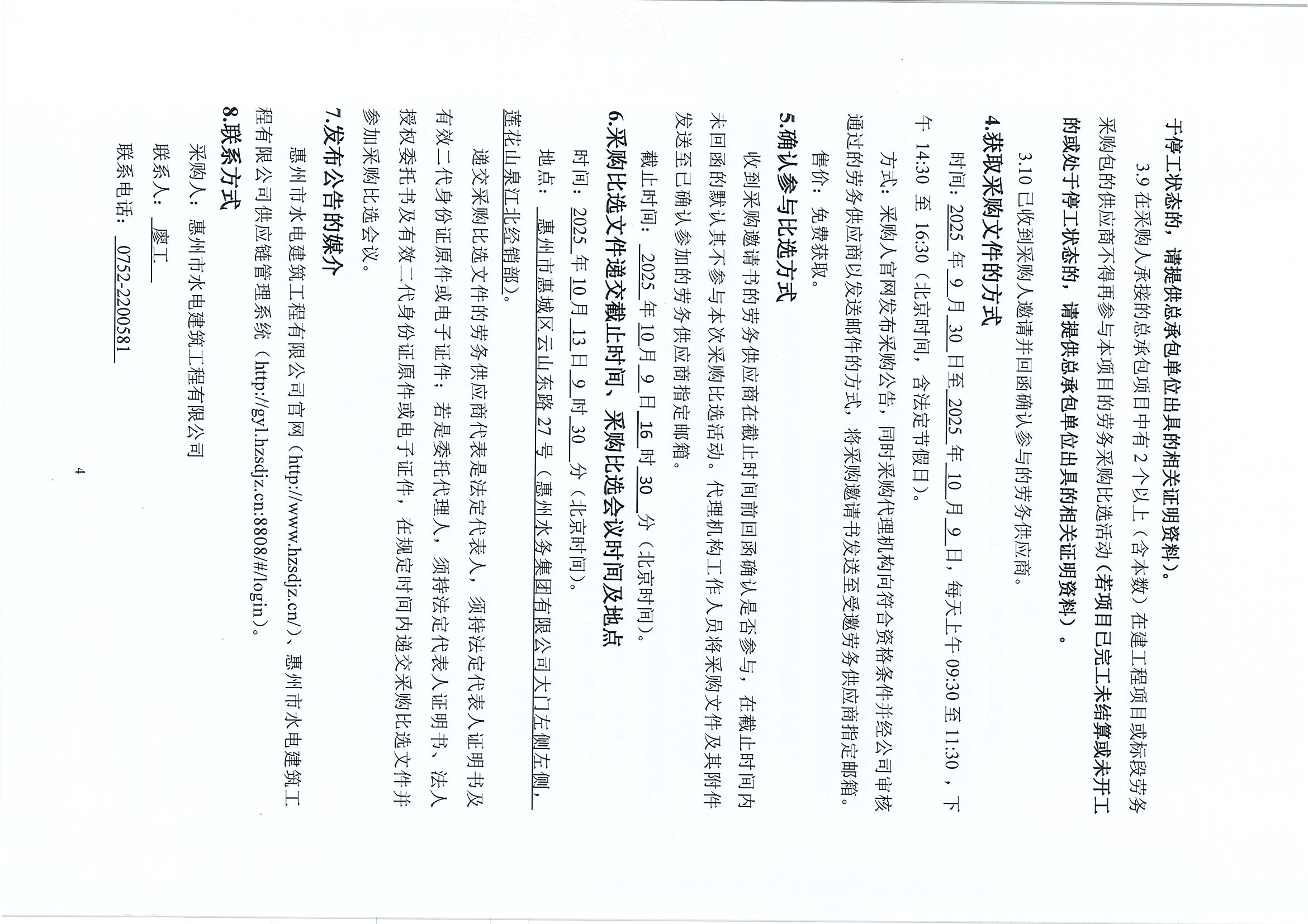 惠州市增江龙门段治理工程施工(一标段)劳务采购比选公告
