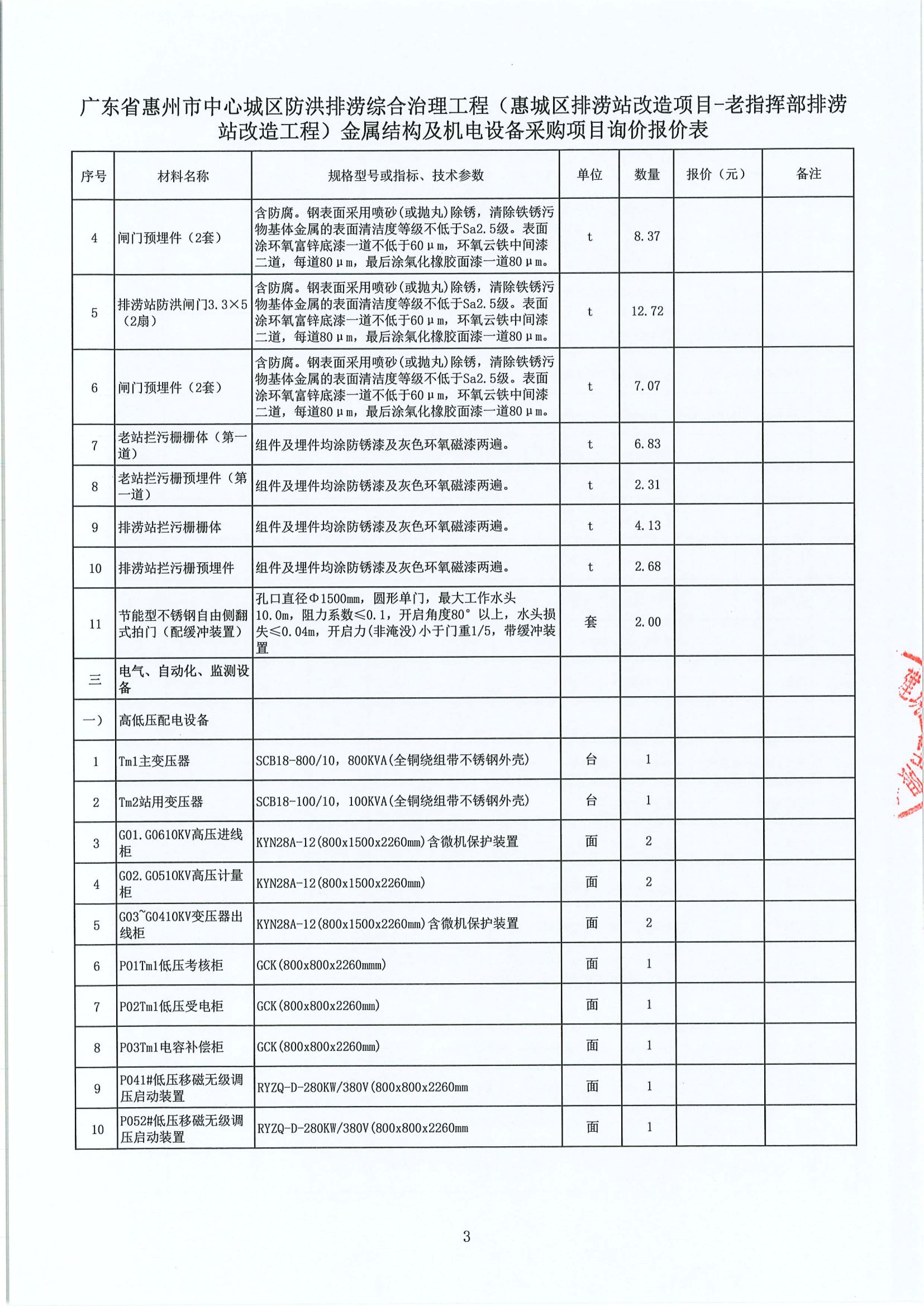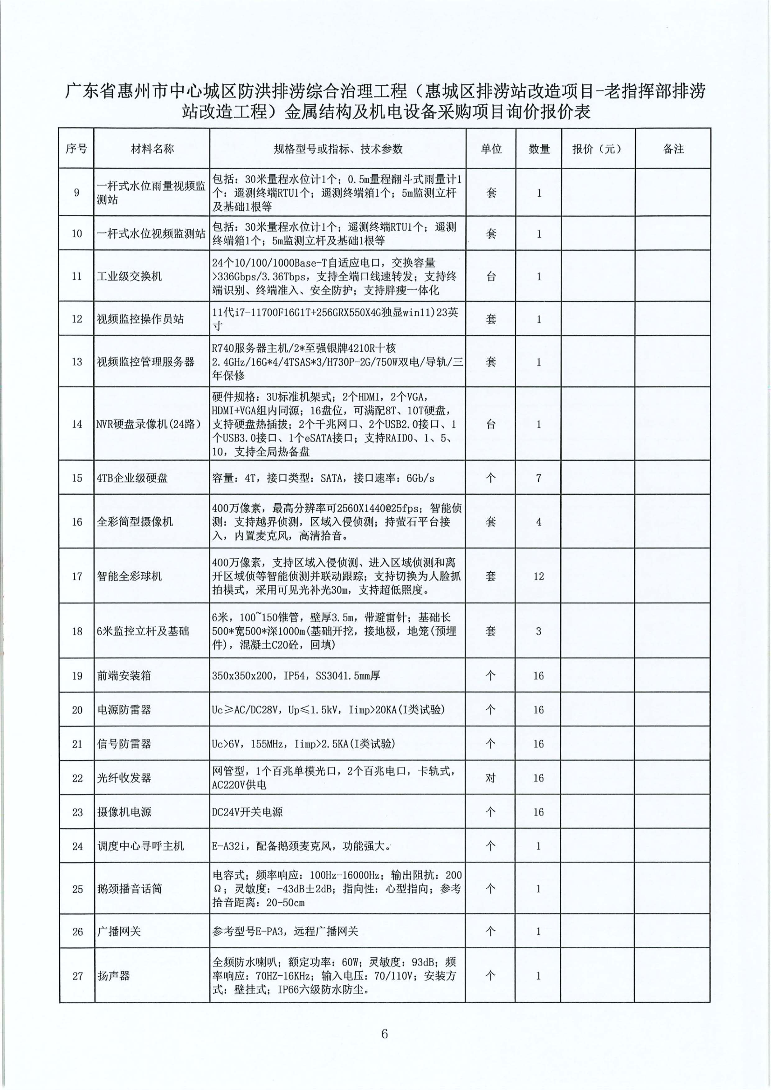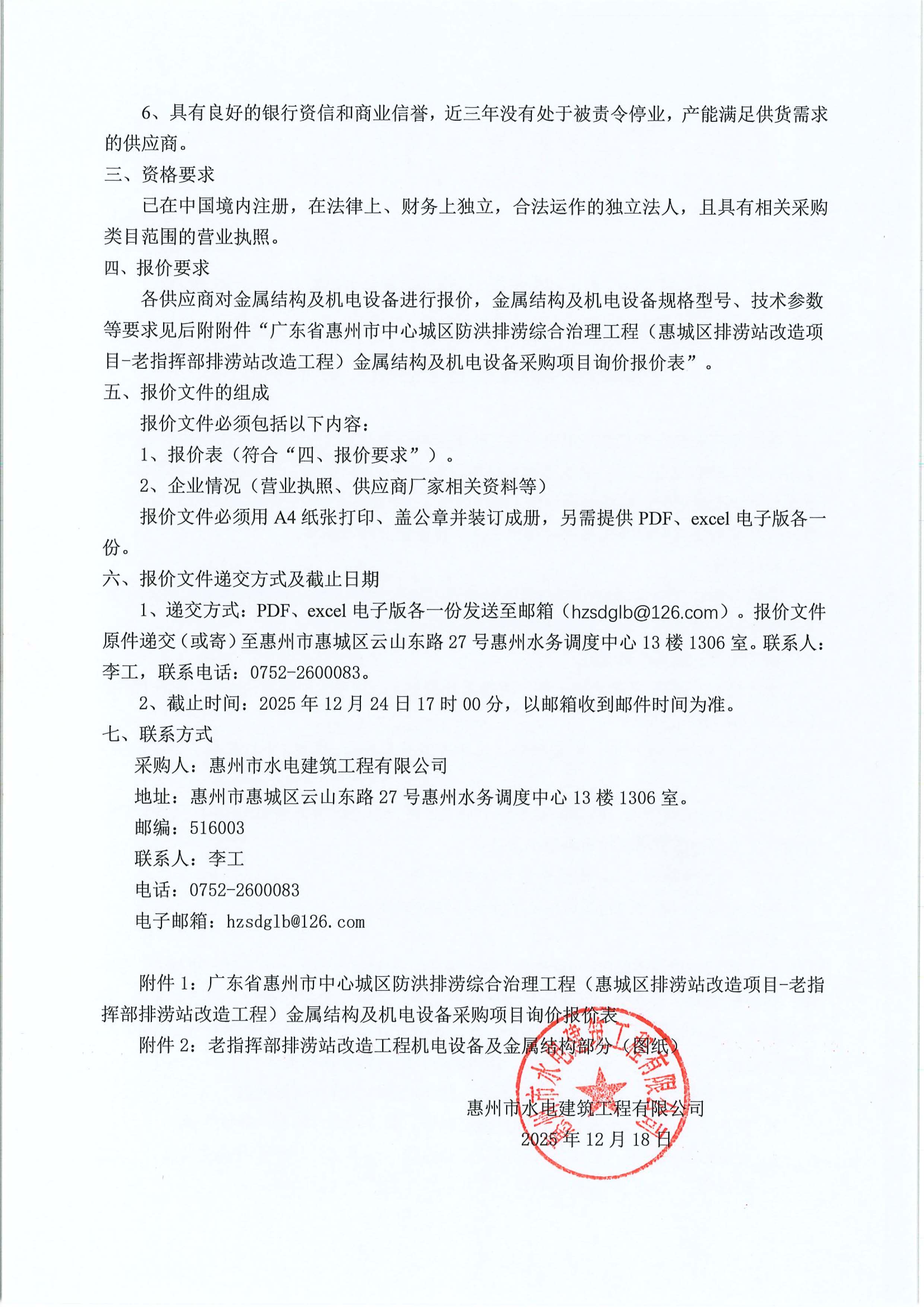 广东省惠州市中心城区防洪排涝综合治理工程(惠城区排涝站改造项目-老指挥部排涝站改造工程)金属结构及机电设备采购项目询价公告附件: